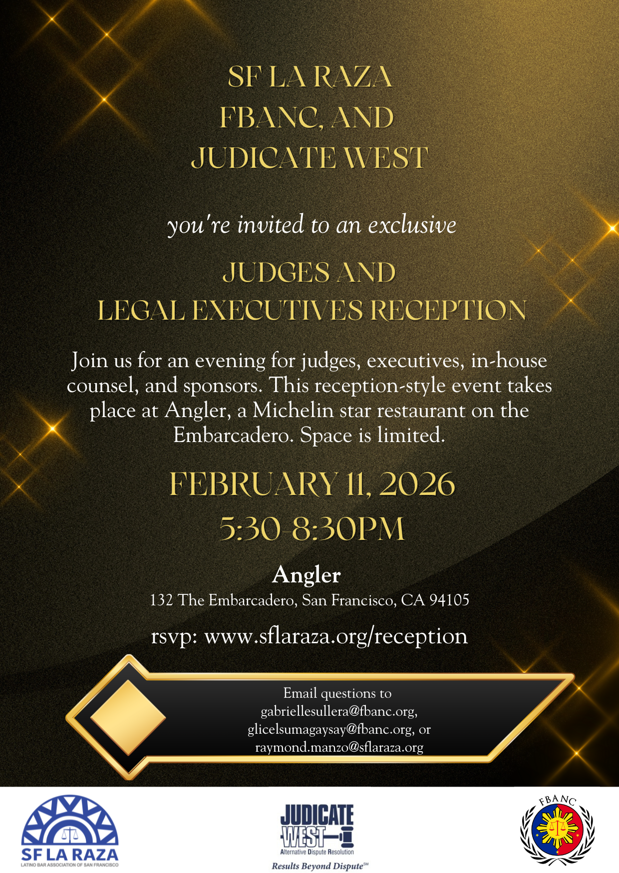 Join us for an exclusive evening for judges, executives, in-house counsel, and sponsors. This reception-style event takes place at Angler, a Michelin star restaurant on the Embarcadero.